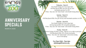 ALABAMA GULF COAST ZOO CELEBRATES ANNIVERSARY WITH SPECIAL OFFERS TO GUESTS